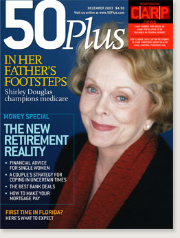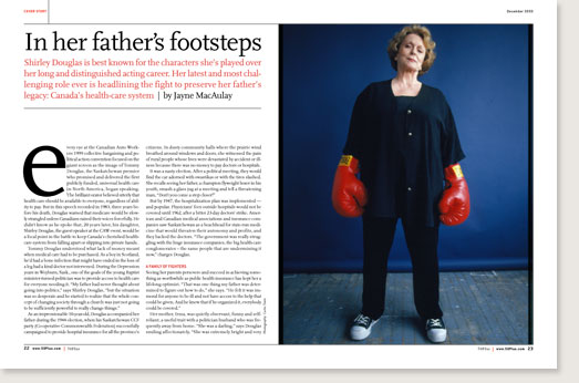 2003 cover and opening spread for feature on actress Shirley Douglas