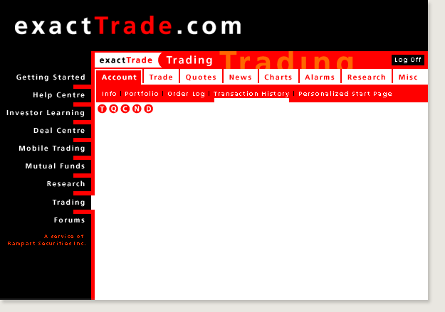 Trading activity site, Account section sample page, 1999